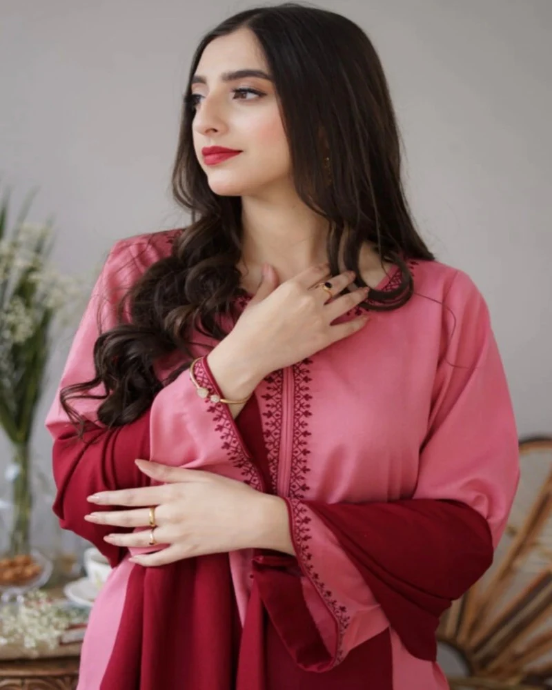 MARIA B. Dhanak 3PC Embroidered With Printed Pashmina Wool Shawl-11