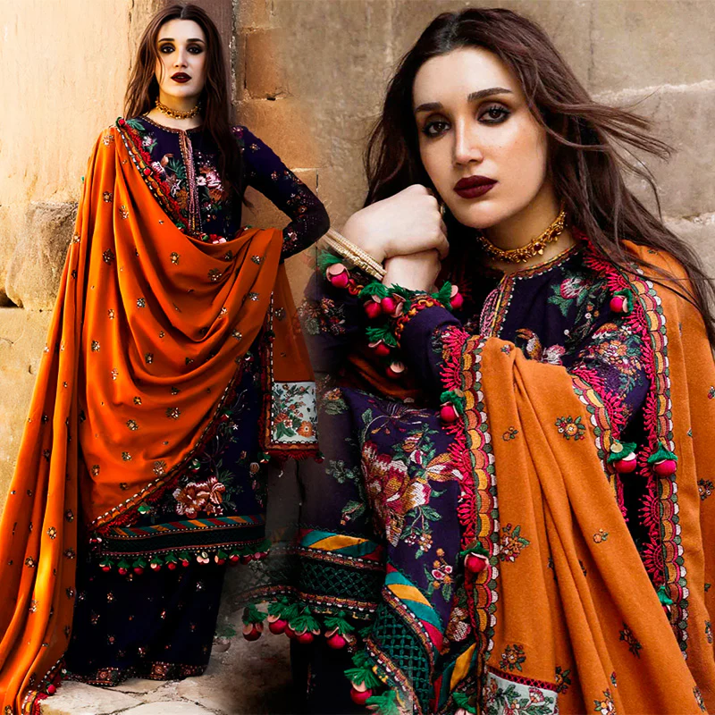 Dhanak 3PC Embroidered Shirt with Embroidered Dhanak Shawl – 19