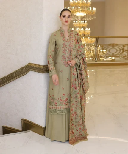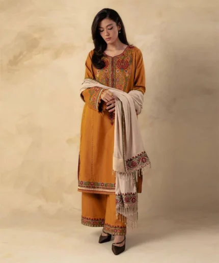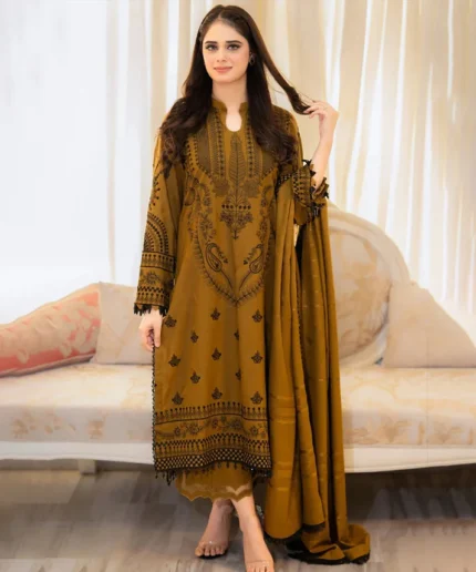 Dhanak 3PC Embroidered Shirt with Embroidered Dhanak Shawl – 19