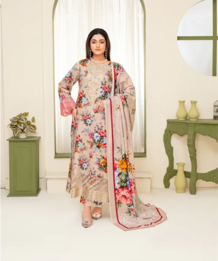 3PC Dhanak Embroidered Shirt With Digital Printed Shawl-163