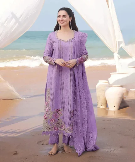 FAIZA SAQLAIN Lawn 3PC Embroidered With Organza Embroidered Dupatta-1049