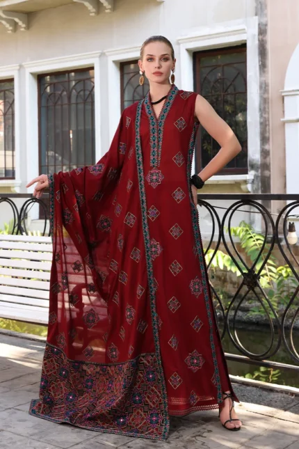Velvet-3pc Embroidered with Organza Embroidered Dupatta-121